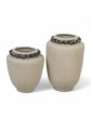VASO CERAMICA COR BEGE / ENFEITE EM CORDA CORES RAMI E AZUL
